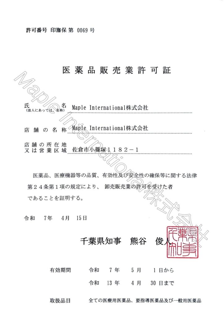 医薬品卸売販売業許可証