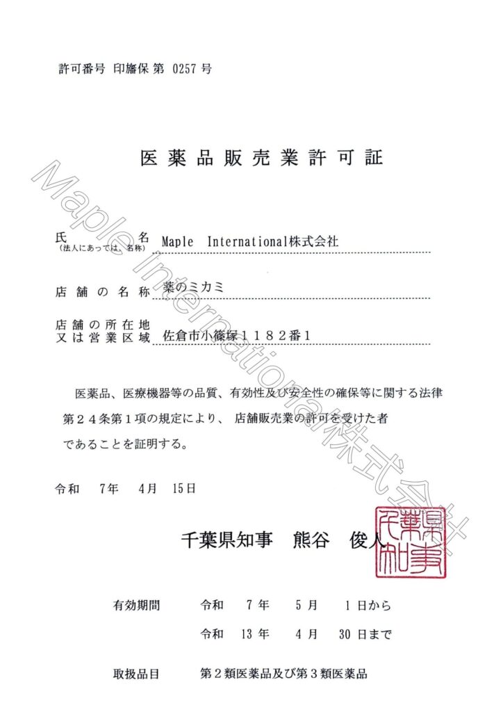 医薬品販売業許可証